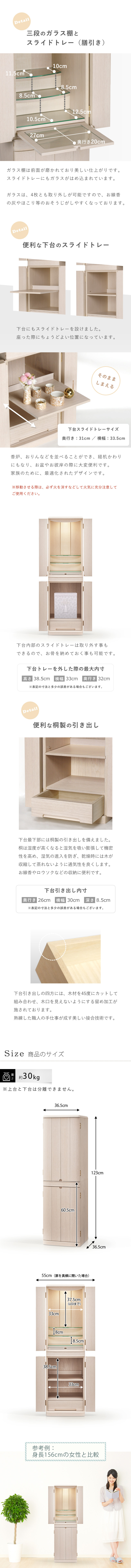 | サイズ | 高さ123 幅36.5 奥行36.5(cm) ※上台と下台は分離出来ません |