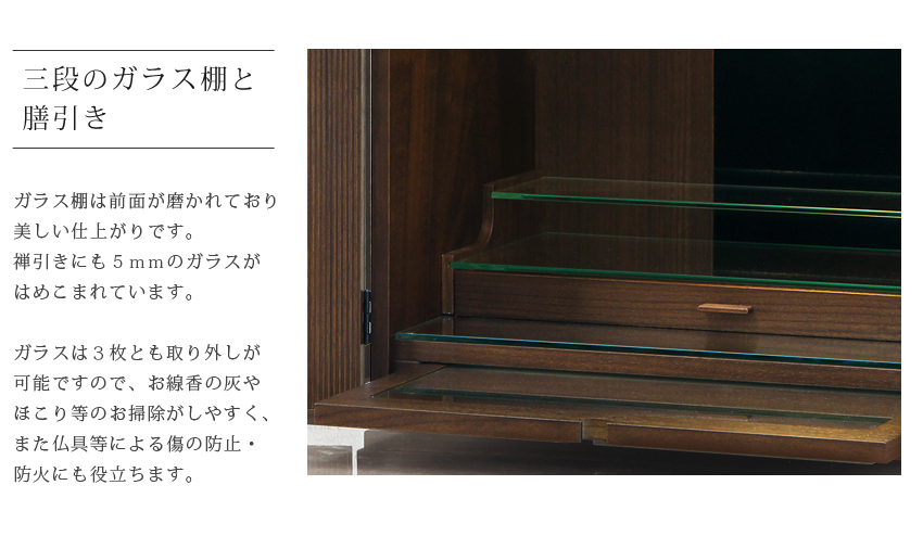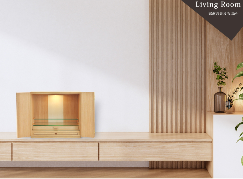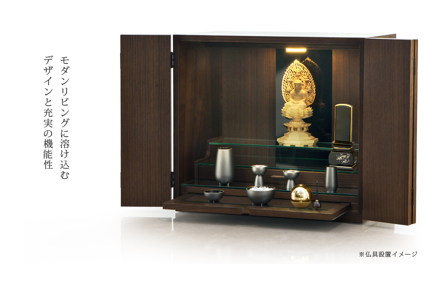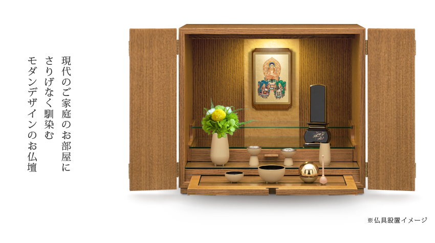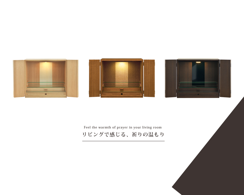 本日届きました。初めての仏壇購入でした。いくつかの仏壇屋さんを巡りましたが、ピンとくるものがなく、ネット検索でコチラを知り、ぜひ実物を見てみようと静岡のショールームまで行くつもりでしたが、あいにく店舗改装中とのことでした。実物を見ないでの購入に躊躇いはありましたが、届いた商品を見て大満足です。村上クラフトさんにして良かったと思っています。扉を開いた状態はもちろんのこと、閉じた姿も美しさがあります。どうぞこれからも素敵な製品づくりをしてください。本当にありがとうございました。