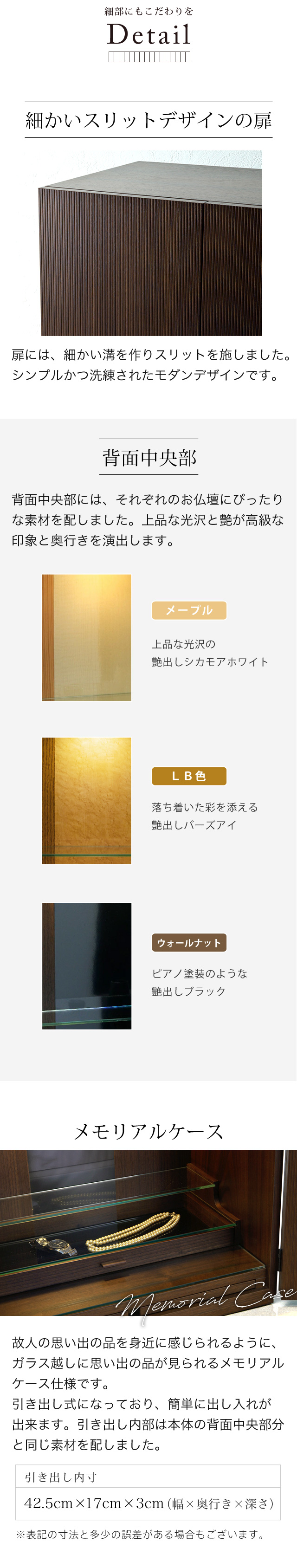 | 材質 | ナチュラル:天然杢ナラ LB色(ライトブラウン):天然杢ナラ ウォールナット:天然杢ウォールナット |