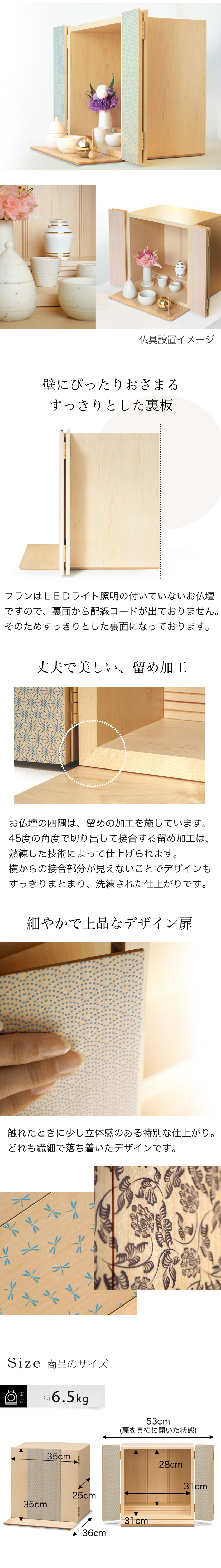 細やかで上品な選べるデザイン扉 機能性と美しさを兼ね備えたコンパクトサイズのお仏壇。