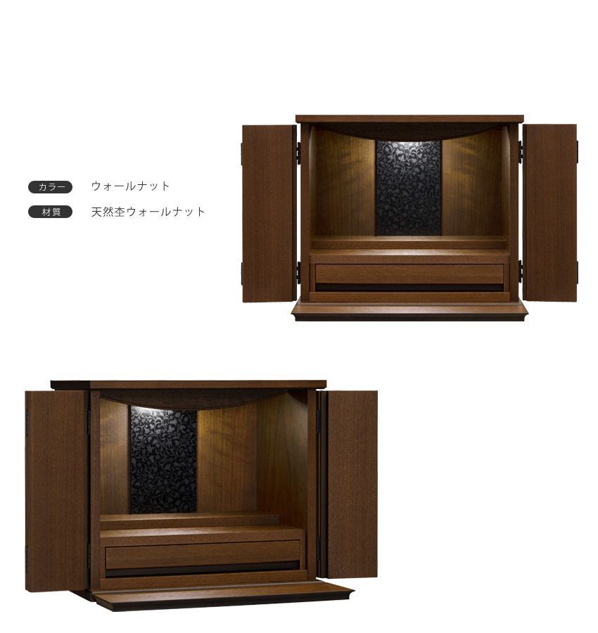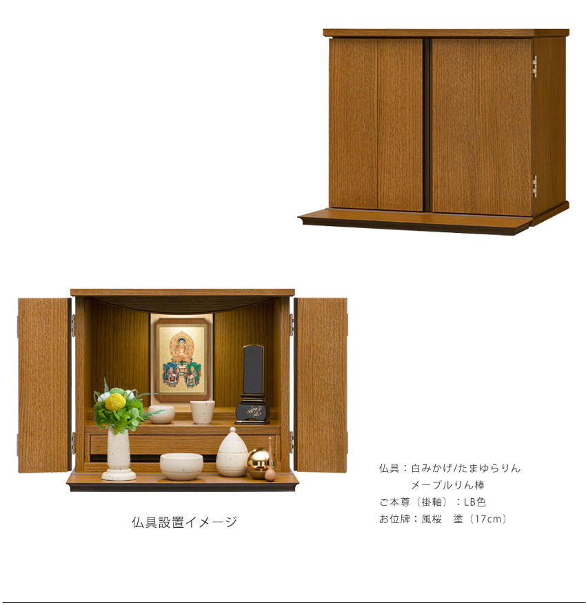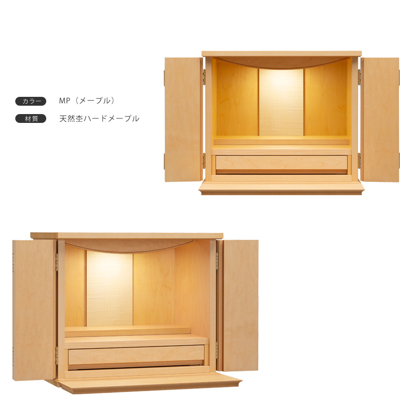 - 置く場所を選ばないコンパクト設計。小さなサイズのお仏壇です。